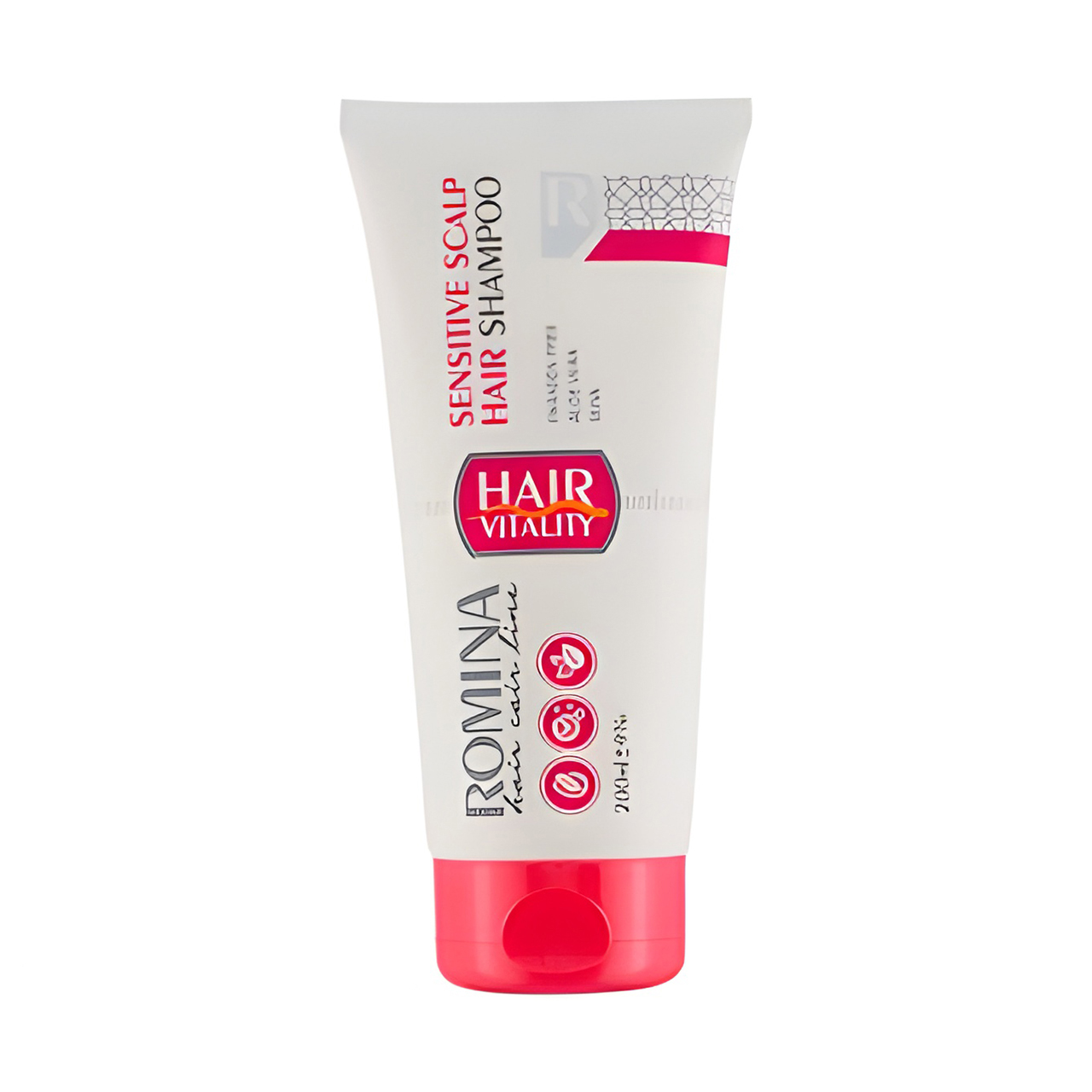 شامپو مناسب پوست سر حساس رومینا شوینده ملایم سر بوده و ضمن پاکسازی مو و پوست سر در کاهش خارش و سوزش پوست سر تاثیر مثبتی دارد. این محصول حاوی عصاره برگ سویا، آلوئه‌ورا، پامچال و ریشه جینسینگ بوده و به آبرسانی و حفظ رطوبت موها کمک می‌کند. شامپو پوست سر حساس رومینا در افزایش نرمی و لطافت موها تاثیرگذار است و به واسطه خاصیت ضدالتهابی خود به التیام و تسکین تحریکات و خارش پوست سر کمک می‌کند. شامپو رومینا با دارا بودن عصاره جینسینگ در کاهش ریزش موها موثر عمل کرده و با کمک به تقویت آنها مانع سفید شدن مو‌ها می‌شود. جینسینگ همچنین با خاصیت آنتی‌باکتریال خود از ایجاد شوره سر جلوگیری کرده و در درمان آن تاثیر خوبی دارد. این محصول ضمن رطوبت‌رسانی به موها از خاصیت ضدخارش و ضدشوره برخوردار است و در افزایش شادابی و طراوت موها موثر است. شامپو رومینا فاقد پارابن بوده و برای استفاده روزانه خانم‌ها و آقایانی که پوست سر حساسی دارند مناسب است.