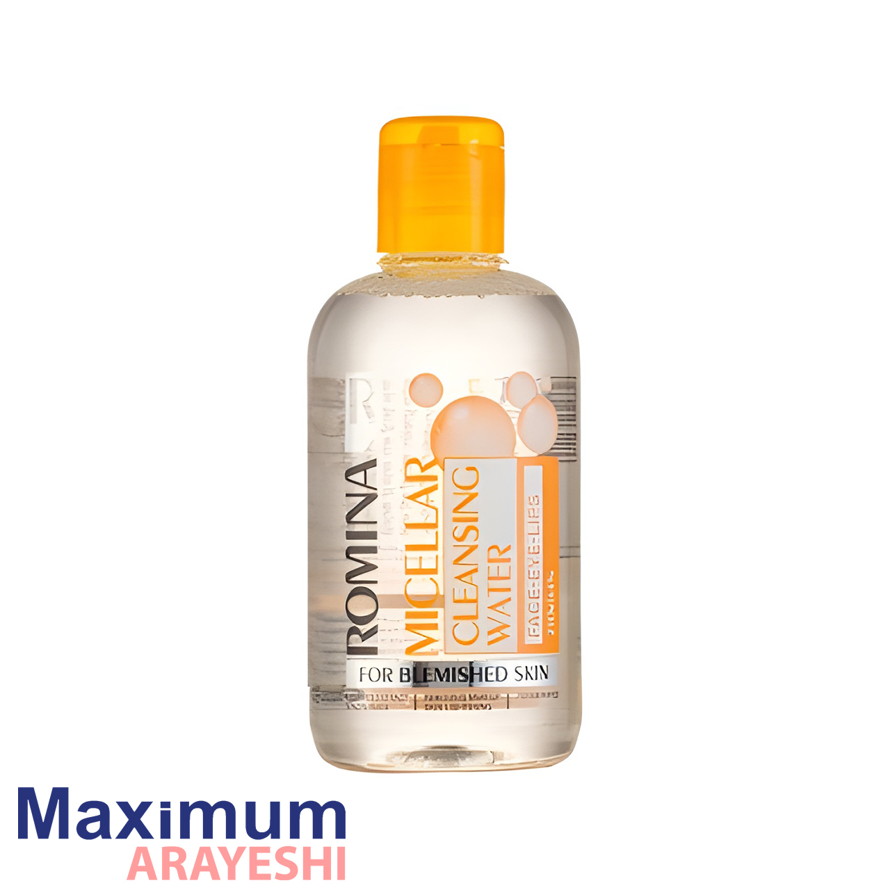 محلول پاک کننده آرایش پوست نرمال رومینا برای پاک کردن آرایش و آلودگی‌ها از روی پوست صورت، چشم و لب